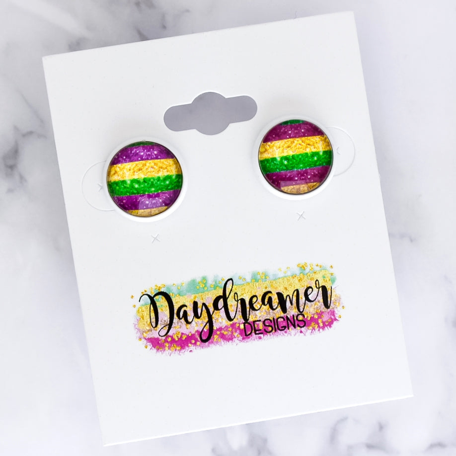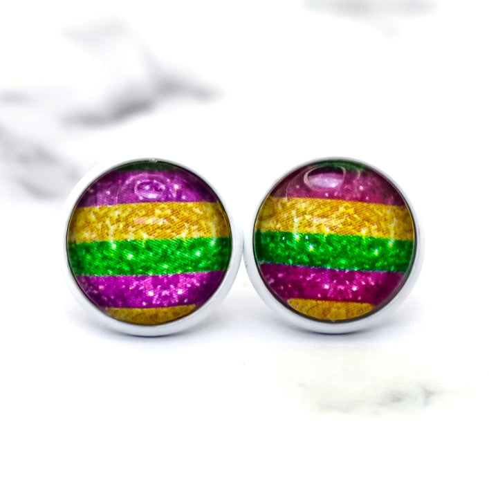 Shown are 12mm stud earrings. This is our most popular size for both adults and kids!
