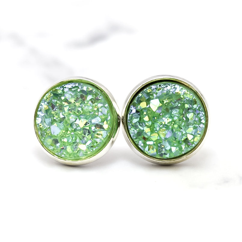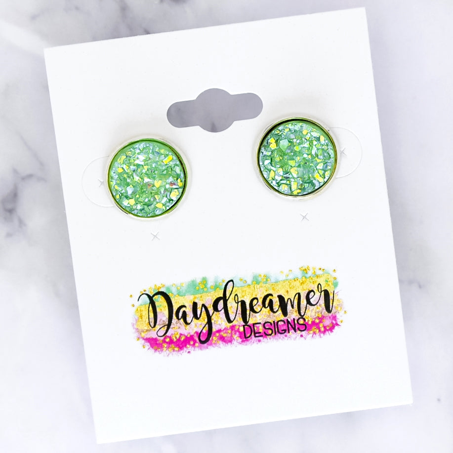 Shown are 12mm stud earrings. This is our most popular size for both adults and kids!