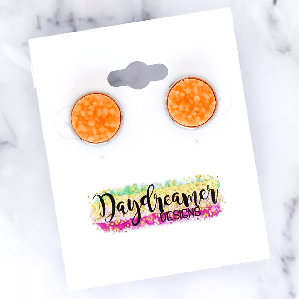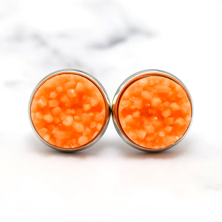 Shown are 12mm stud earrings. This is our most popular size for both adults and kids!