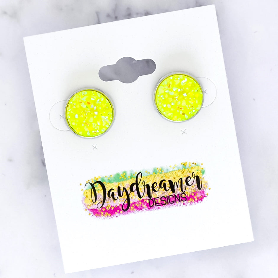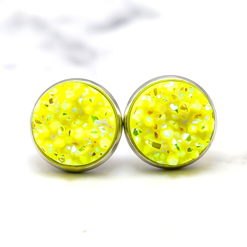 Shown are 12mm stud earrings. This is our most popular size for both adults and kids!