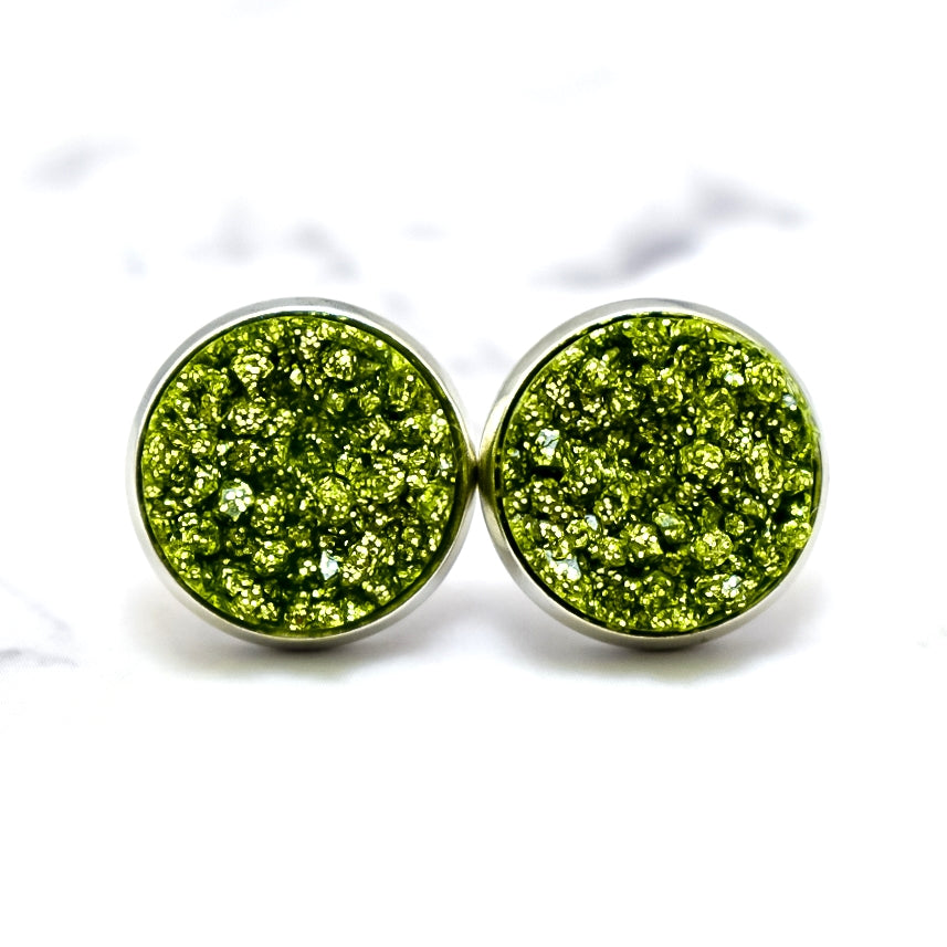 Shown are 12mm stud earrings. This is our most popular size for both adults and kids!
