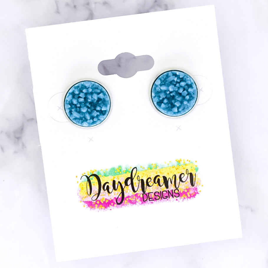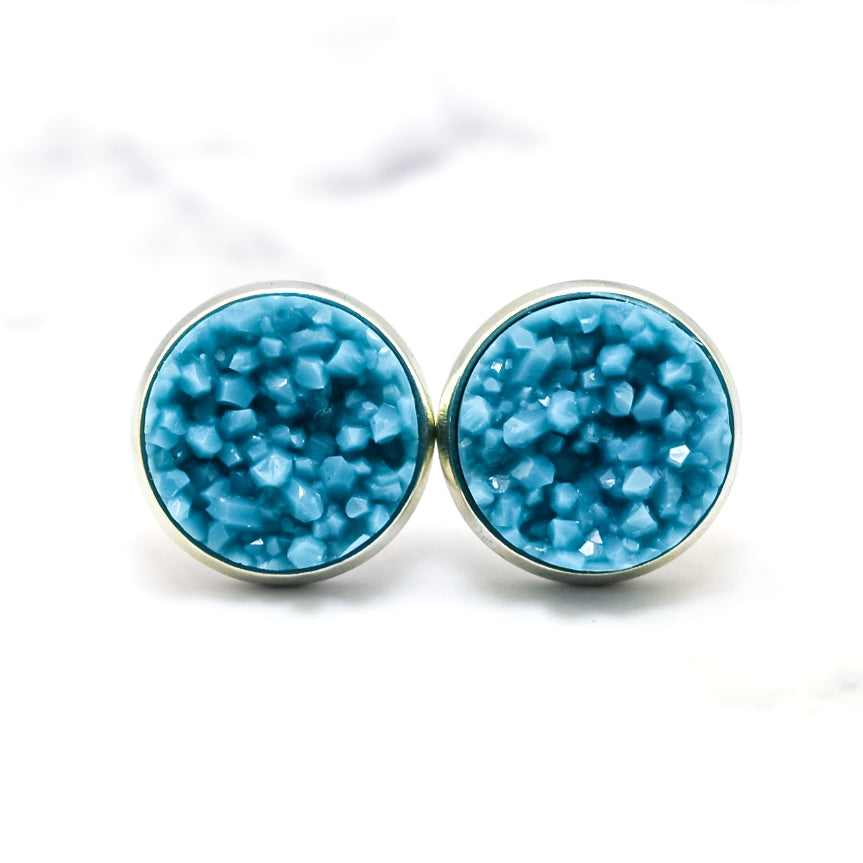 Peacock Druzy Stud Earrings