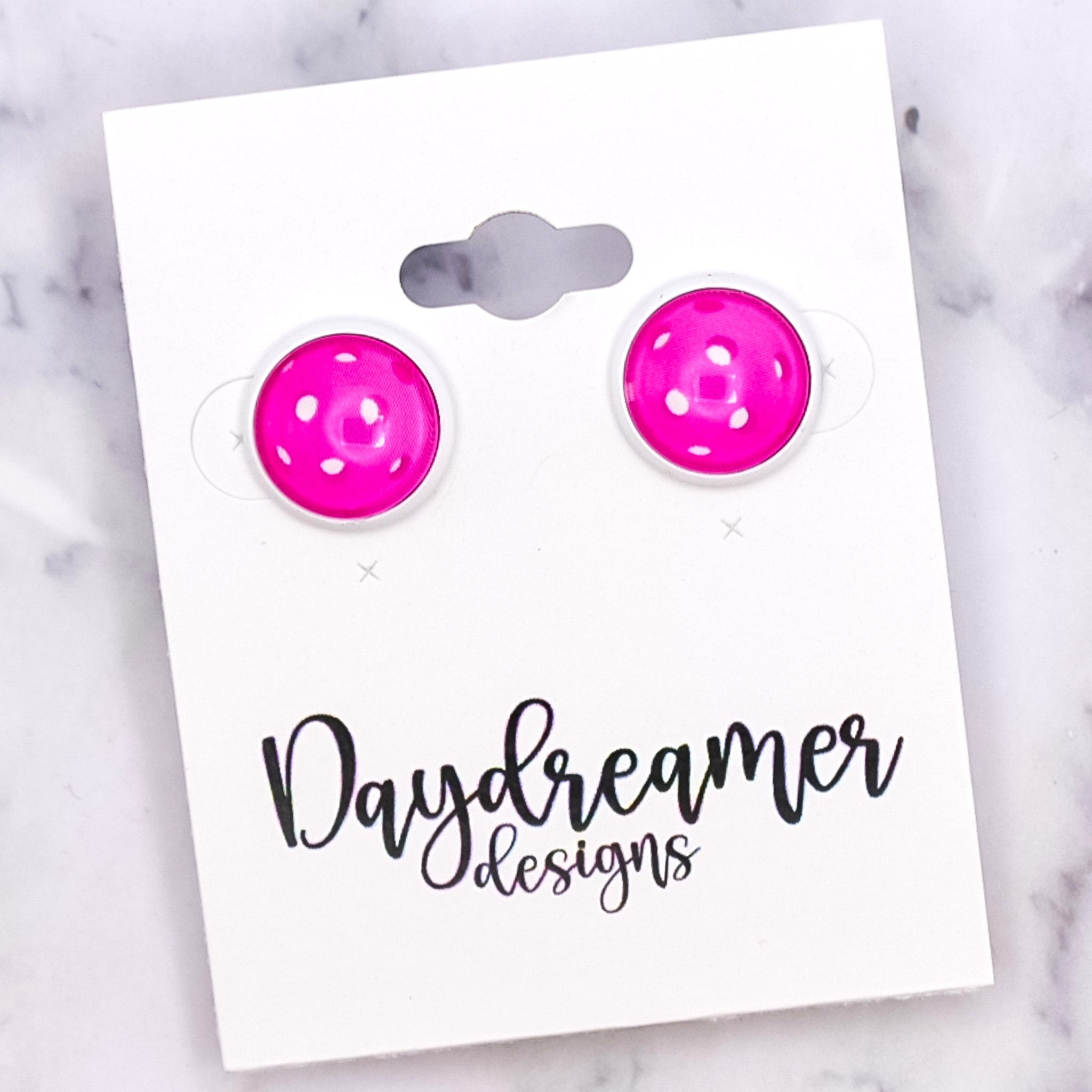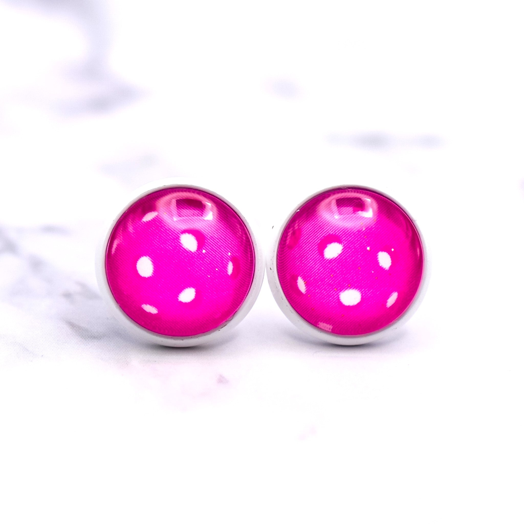 Shown are 12mm stud earrings. This is our most popular size for both adults and kids!