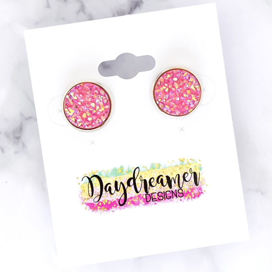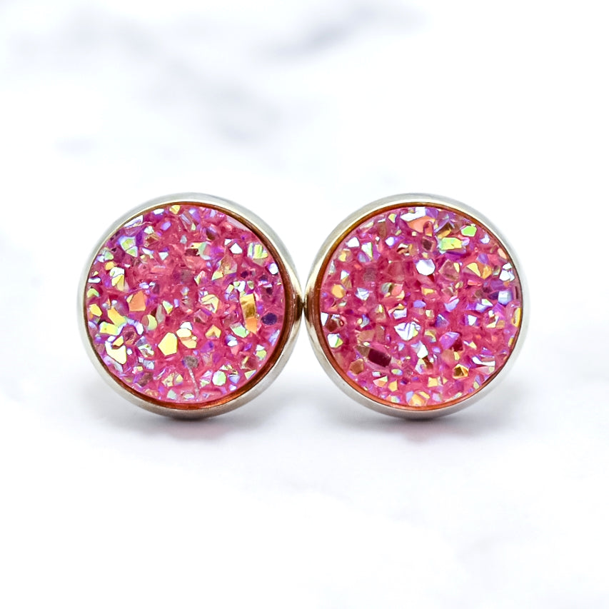 Shown are 12mm stud earrings. This is our most popular size for both adults and kids!