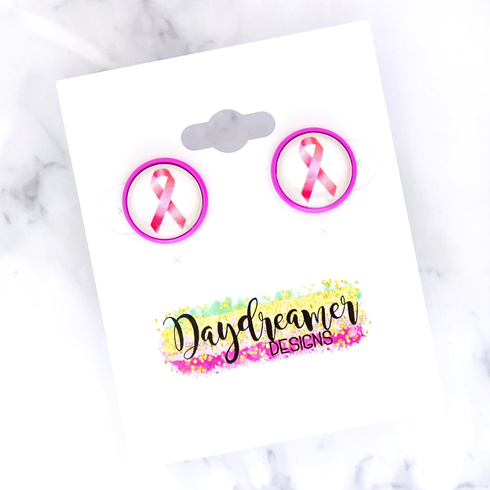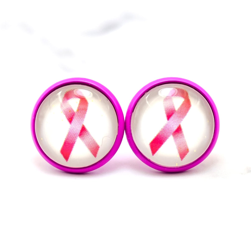Awareness Ribbon Photo Stud Earrings (Pick Your Color)