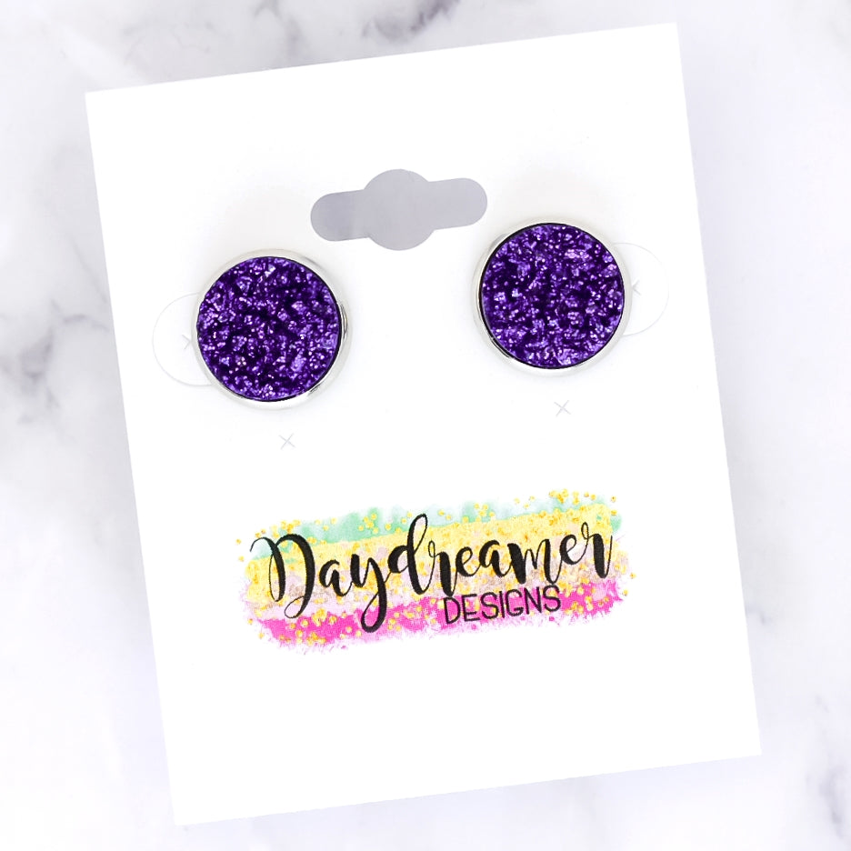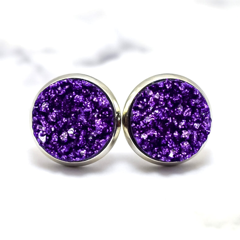 Purple Glitter Druzy Stud Earrings