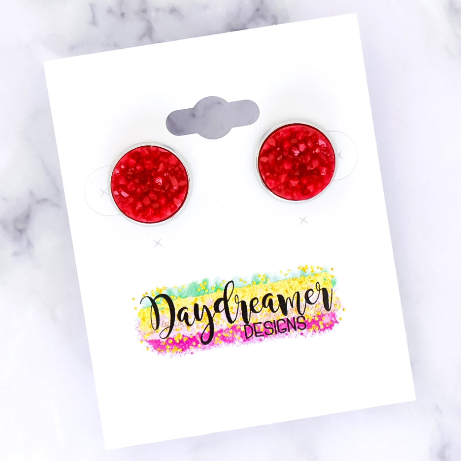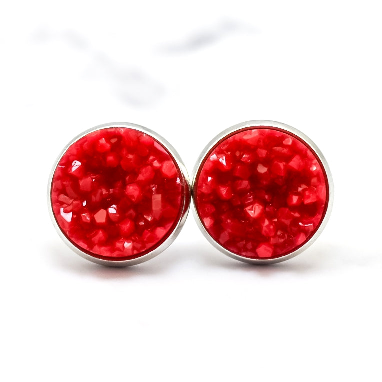 Shown are 12mm stud earrings. This is our most popular size for both adults and kids!