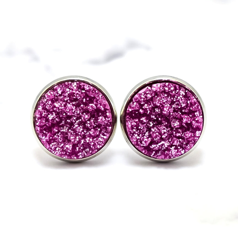 Shown are 12mm stud earrings. This is our most popular size for both adults and kids!