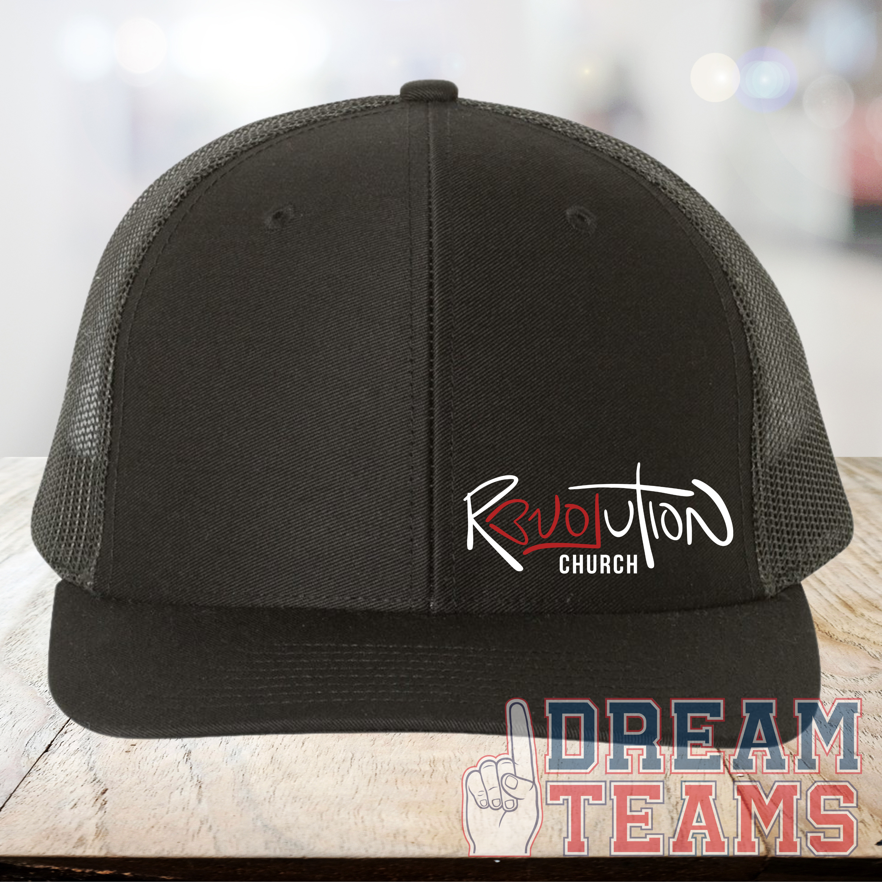 Hat brands and color shades may vary depending on availability. This hat is Unisex-sized and features a mesh back. An adjustable snapback closure ensures a secure fit.