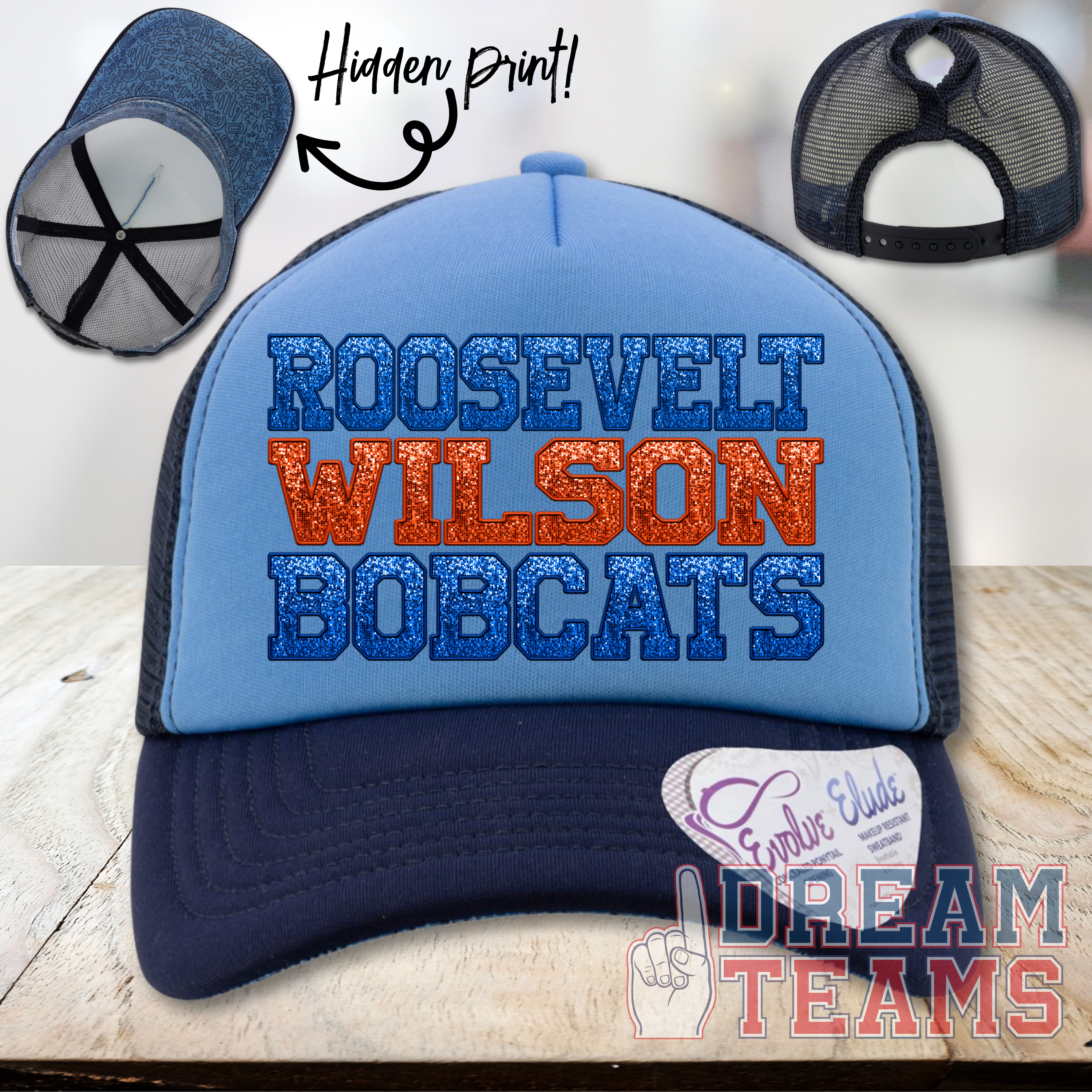 Roosevelt-Wilson Bobcats - Faux Sequins - Foam Ponytail Trucker Cap*