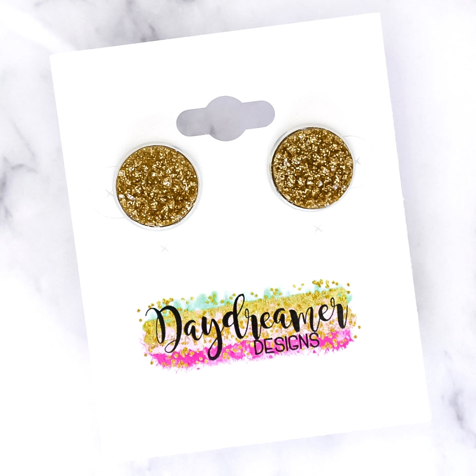 Shown are 12mm stud earrings. This is our most popular size for both adults and kids!