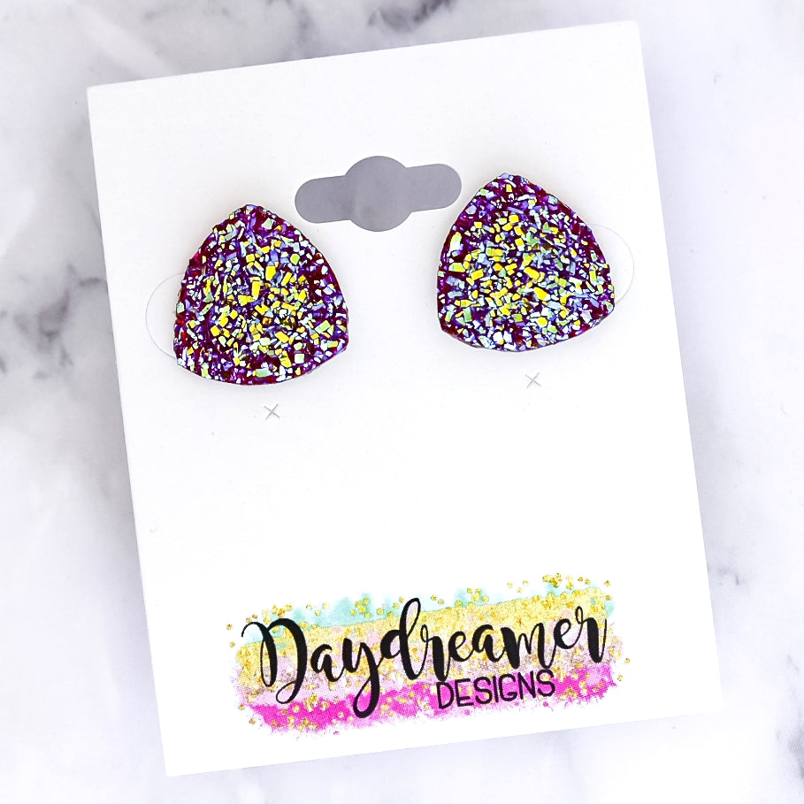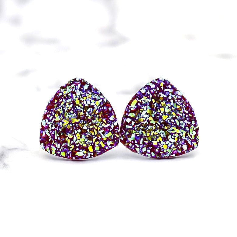 The setting refers to the metal part of the earring. Posts are centered on the backs of each earring. Settings are nickel and lead-free.