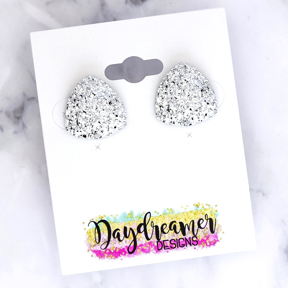 The setting refers to the metal part of the earring. Posts are centered on the backs of each earring. Settings are nickel and lead-free.