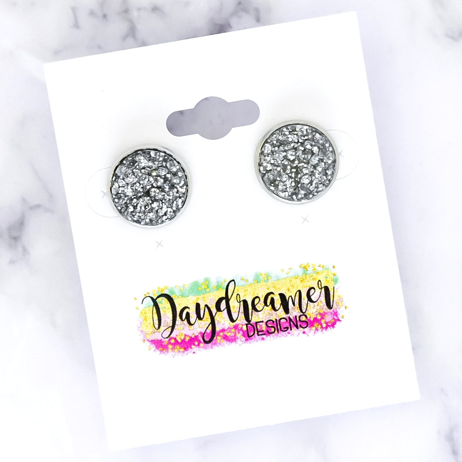 Shown are 12mm stud earrings. This is our most popular size for both adults and kids!