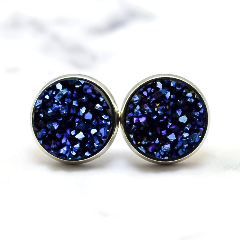 Shown are 12mm stud earrings. This is our most popular size for both adults and kids!
