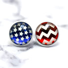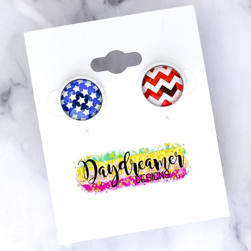 Shown are 12mm stud earrings. This is our most popular size for both adults and kids!