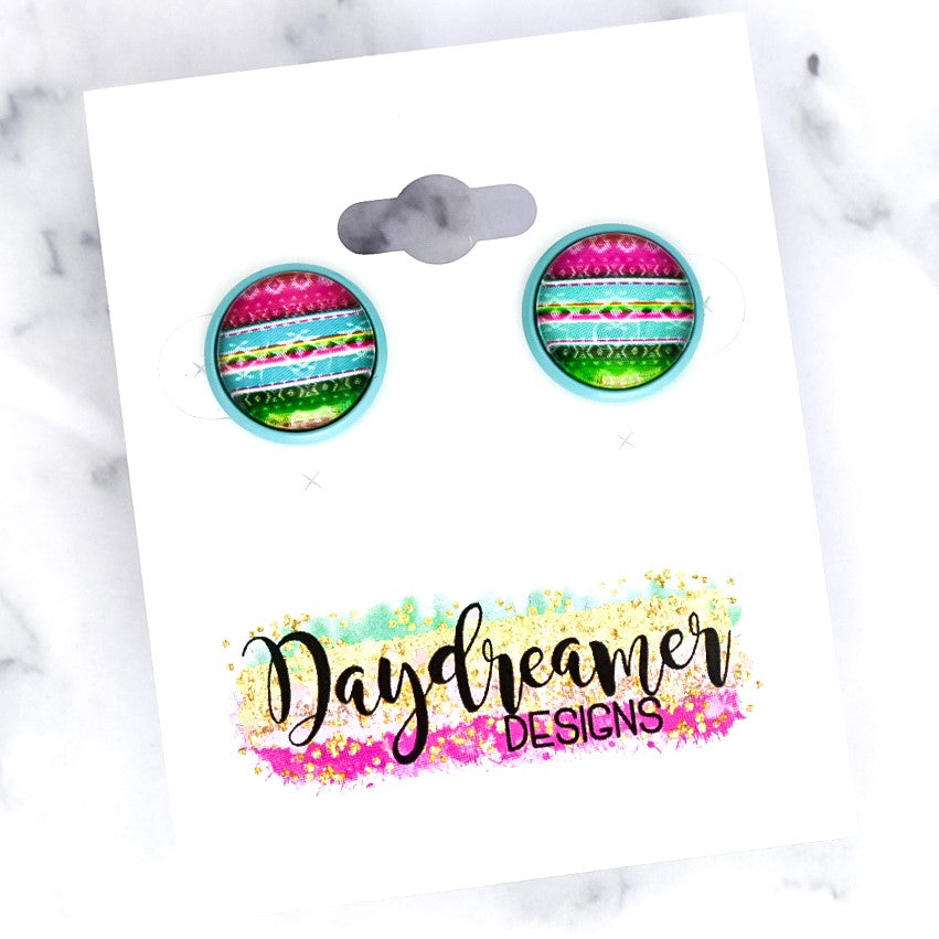 Shown are 12mm stud earrings. This is our most popular size for both adults and kids!