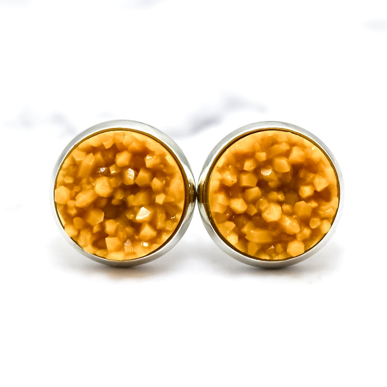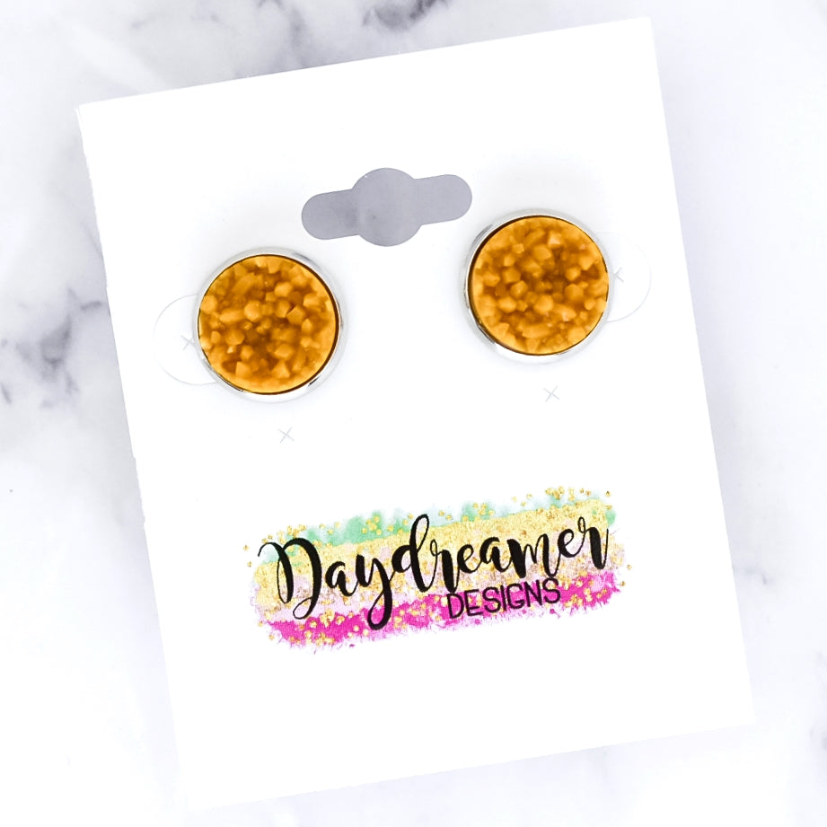 Shown are 12mm stud earrings. This is our most popular size for both adults and kids!
