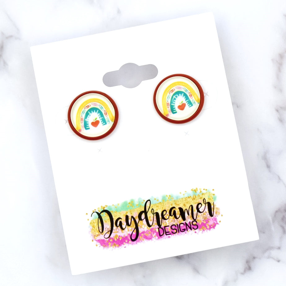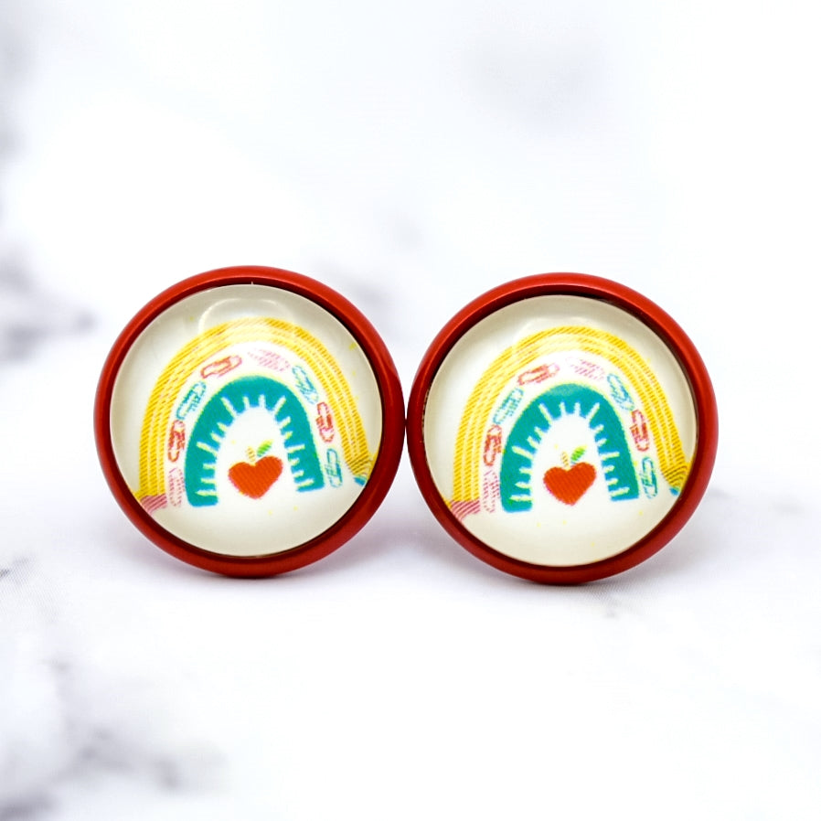 Shown are 12mm stud earrings. This is our most popular size for both adults and kids!