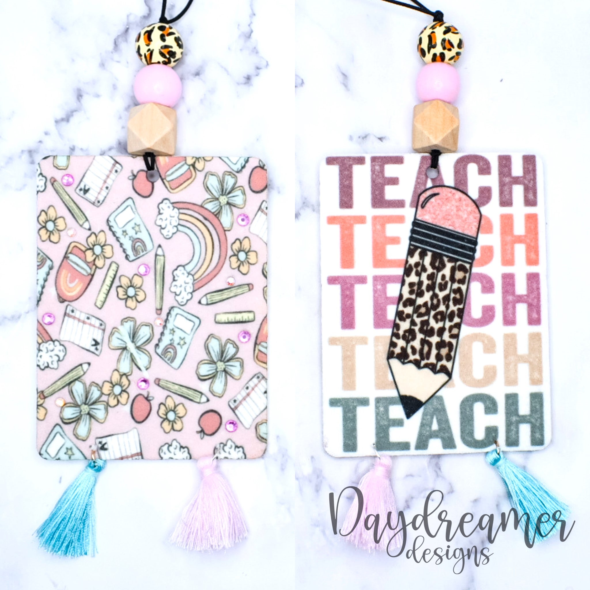 Our felt freshies are full of detail with a 2 sided print and an option for beads and tassels. Hang them in your car, office, or any small space. Once they fade, you can re-scent them with your favorite perfume, essential oil, etc. by applying them to the sides and allowing the oil/liquid to soak in. Bead, tassel, and string color may vary.