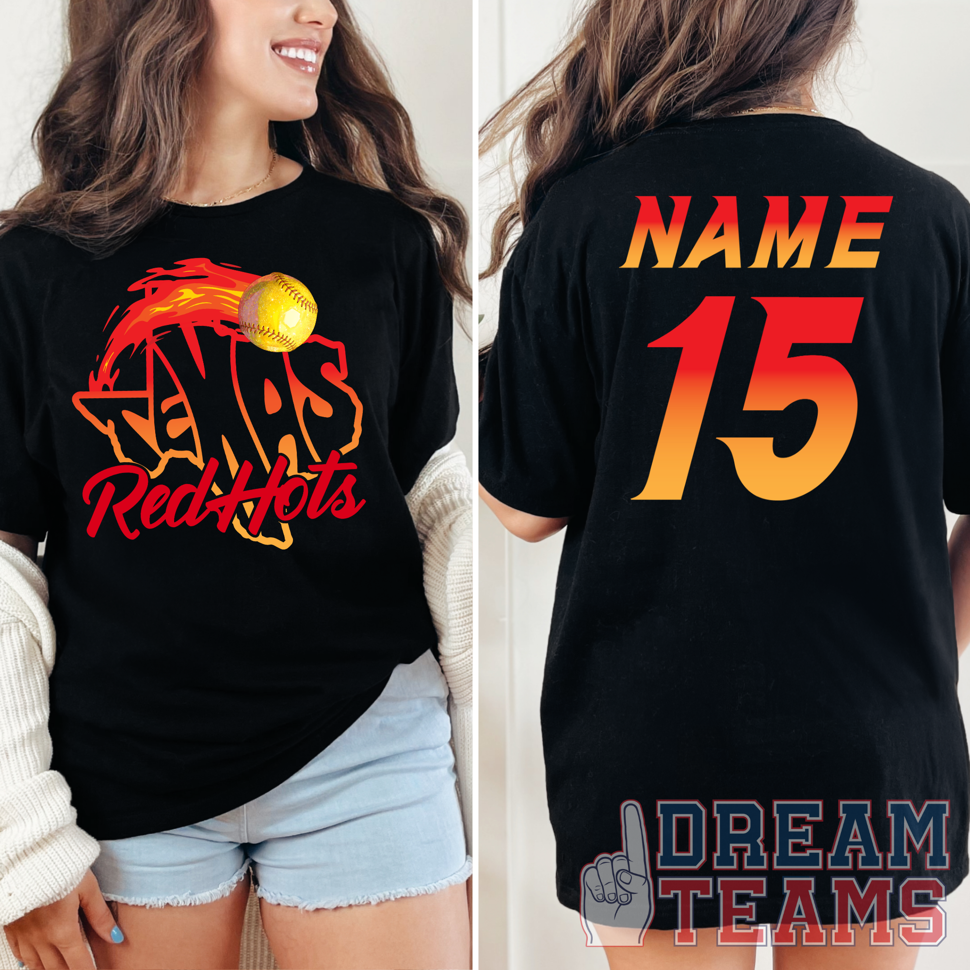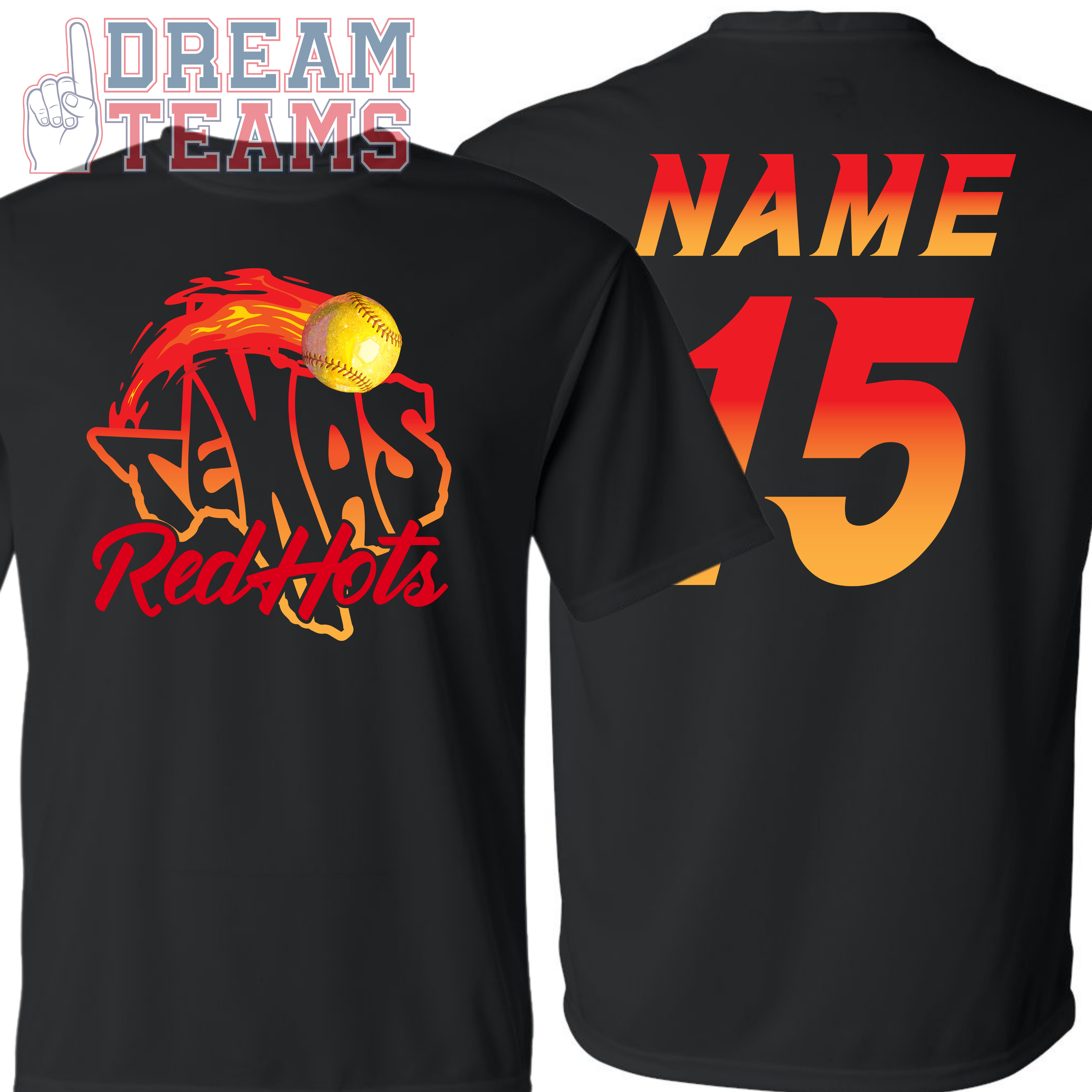 Type the exact NAME and NUMBER you want on the tee in the notes box. Ex: "COACH" or "YOURNAME 00". If no notes are included the tee will have the front logo only. There is no price difference for a blank tee.
