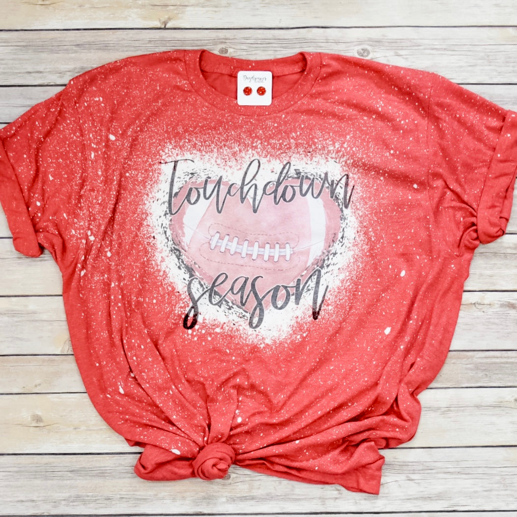 *Bleached tees are weather-dependent. We take advantage of every sunny minute! However, please note that rainy/cold/windy/overcast weather may delay production or produce more of a vintage look. Bleaching is a process of destressing and discoloring the tees, so no two will be the same. Bleached tees are washed before shipment.