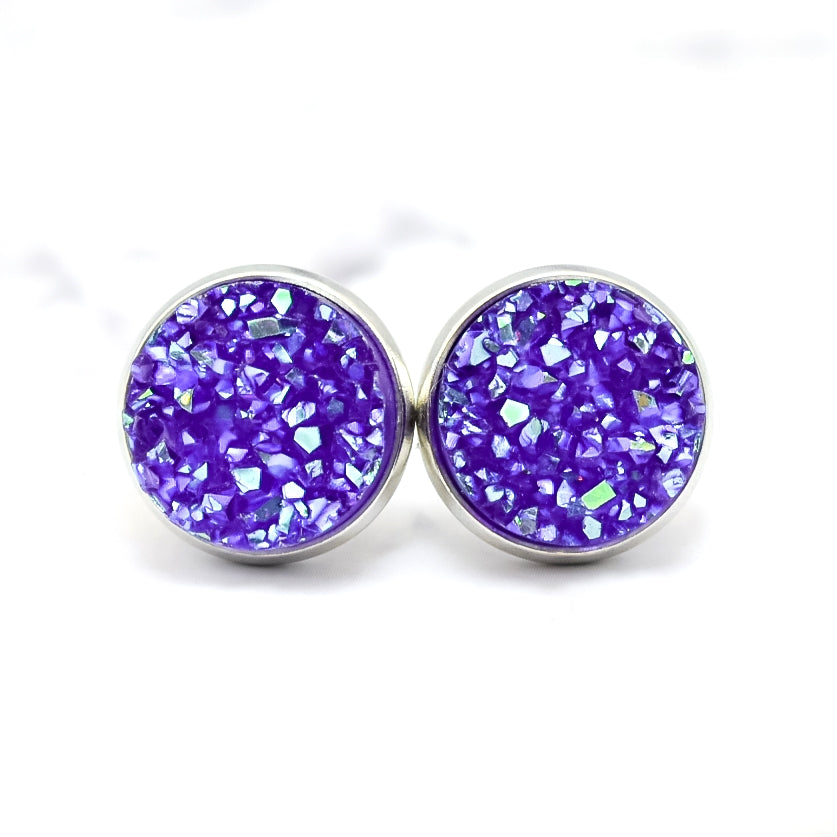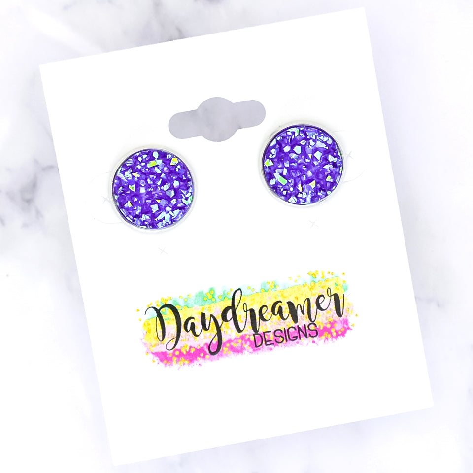 Shown are 12mm stud earrings. This is our most popular size for both adults and kids!