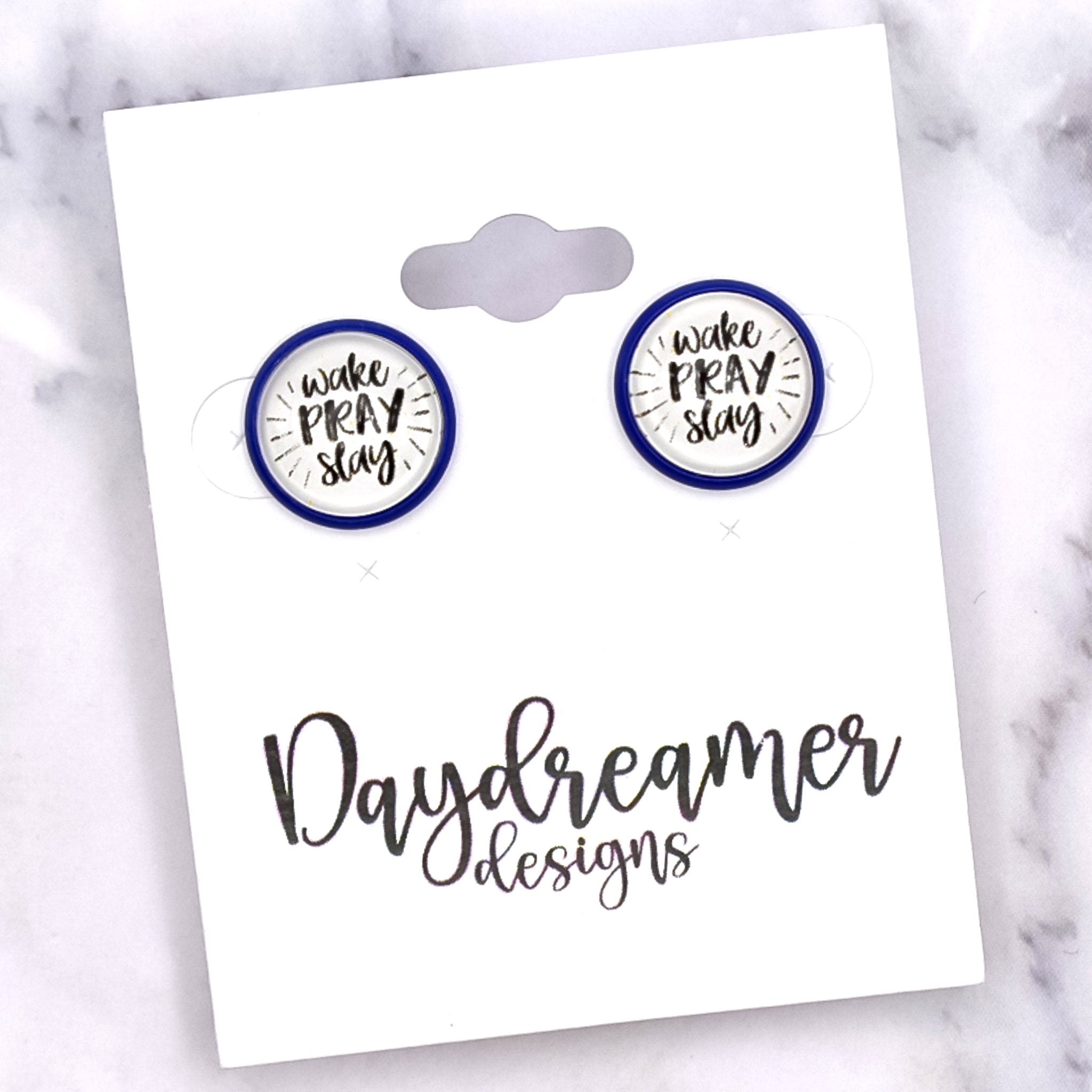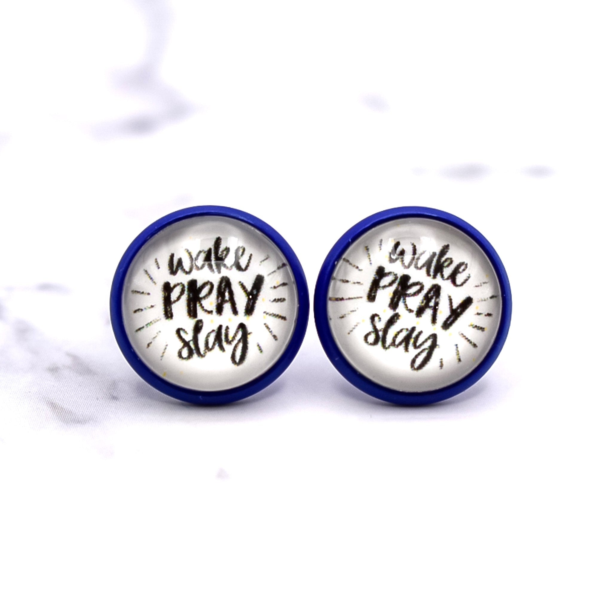 Shown are 12mm stud earrings. This is our most popular size for both adults and kids!