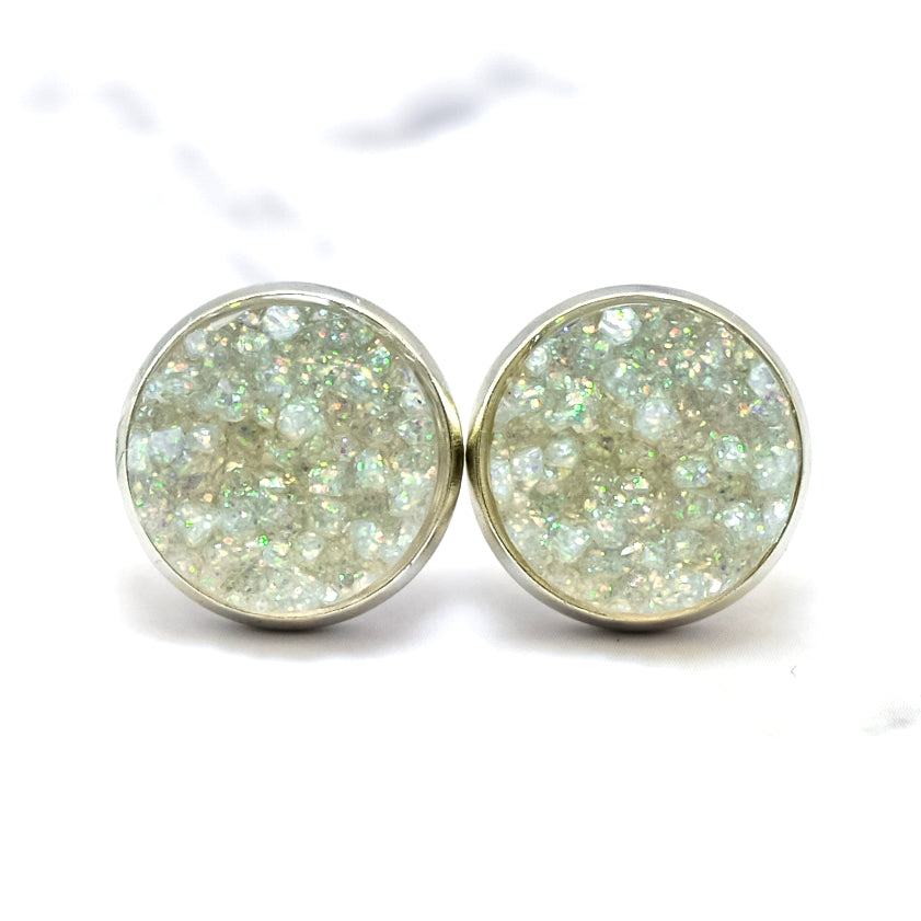 Shown are 12mm stud earrings. This is our most popular size for both adults and kids!