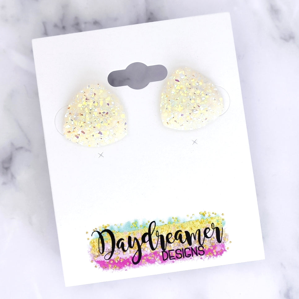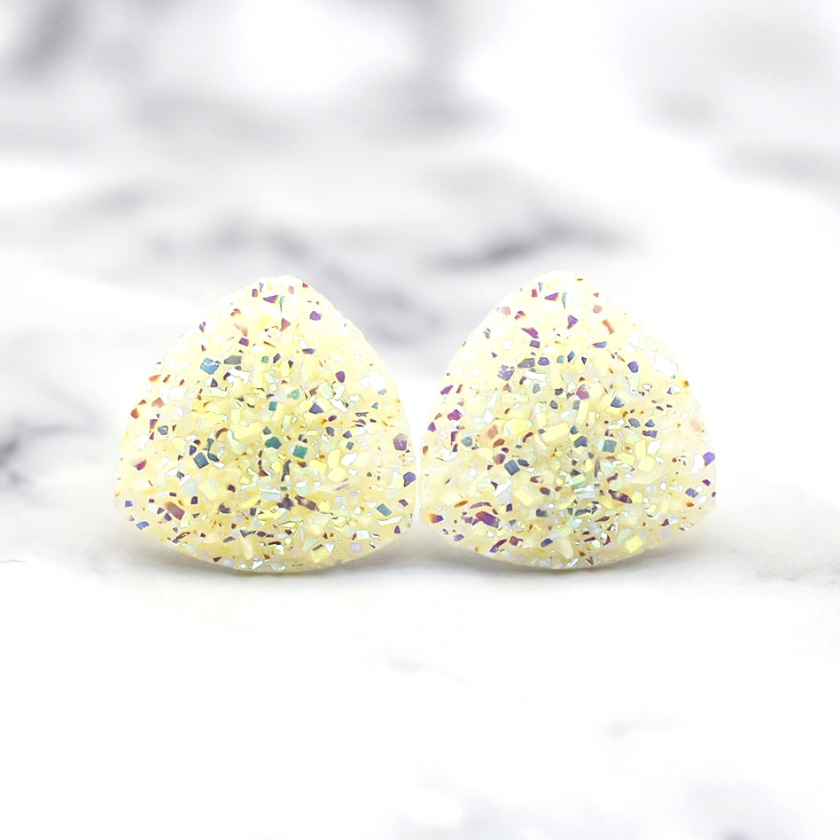 White AB Triangle Druzy Stud Earrings