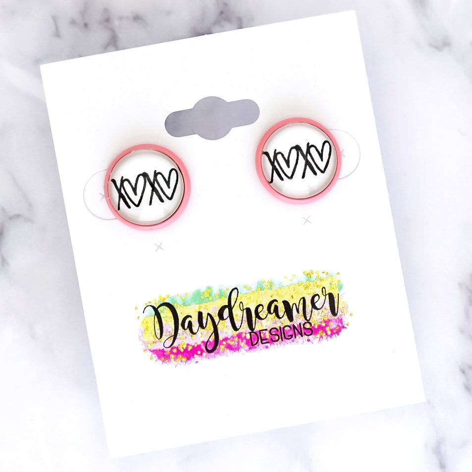 Shown are 12mm stud earrings. This is our most popular size for both adults and kids!